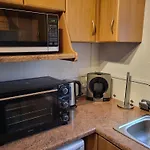 Eine komplette Küche mit einer Mikrowelle, einer Kaffee-/Teemaschine und einem Kühlschrank steht für Selbstversorger zur Verfügung.